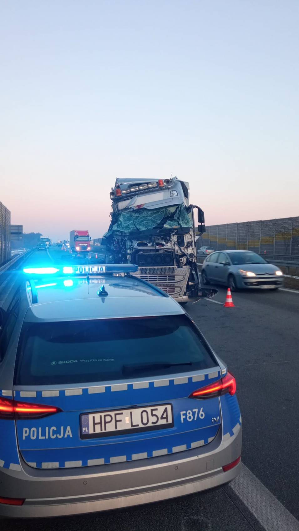 Jak wynika ze wstępnych ustaleń, 39-letni kierujący pojazdem ciężarowym marki Volvo z naczepą najechał na tył unieruchomionego na poboczu pojazdu ciężarowego marki Scania z naczepą. Scanią kierował 23-letni mieszkaniec powiatu sochaczewskiego.
