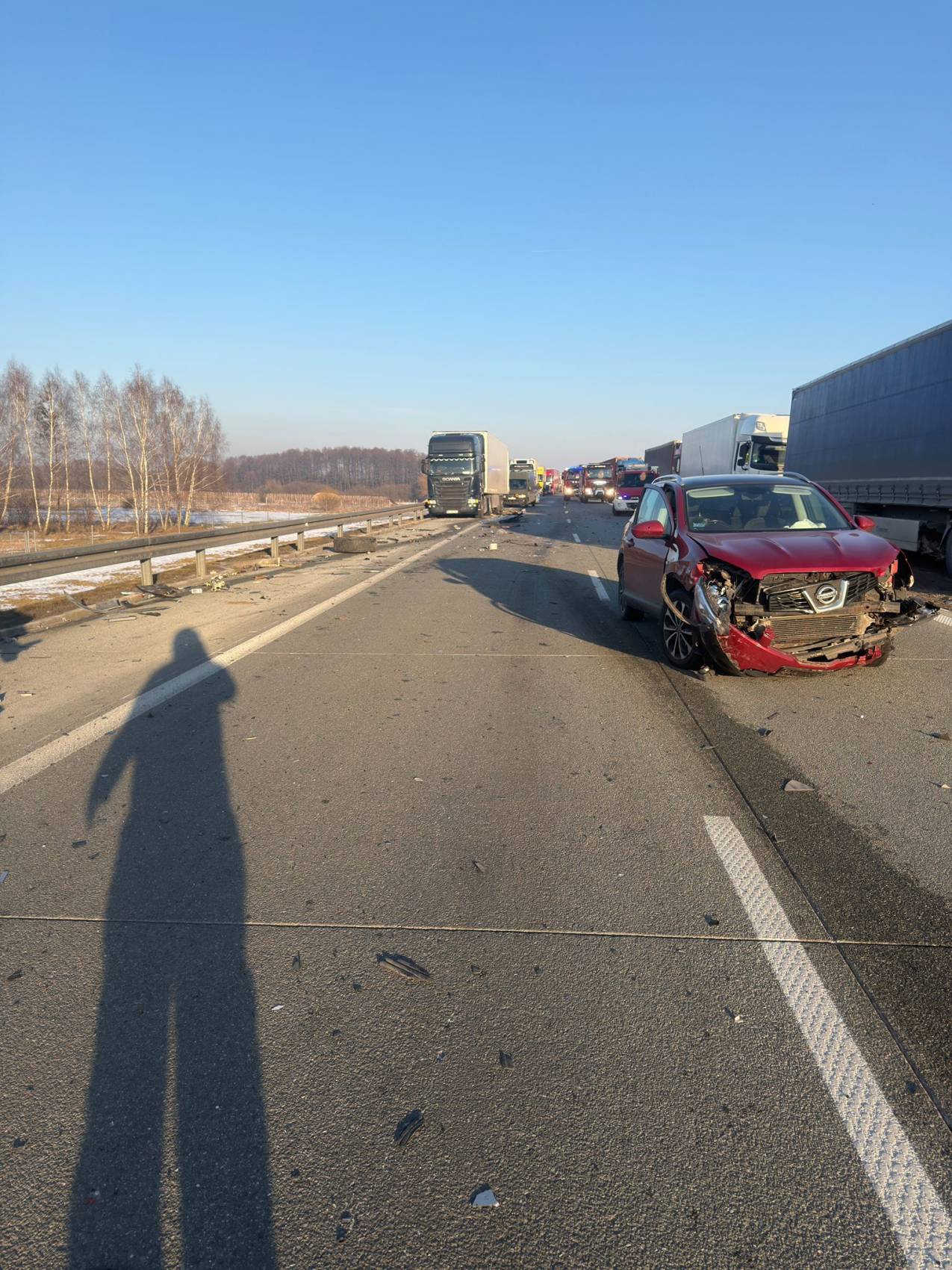 Wypadek z udziałem czterech pojazdów na drodze ekspresowej S8. Na wysokości 219. kilometra w kierunku Wrocławia doszło do poważnego zdarzenia z udziałem trzech samochodów ciężarowych i auta osobowego. W wyniku kolizji dwie osoby zostały ranne, a na miejsce wezwano śmigłowiec Lotniczego Pogotowia Ratunkowego.