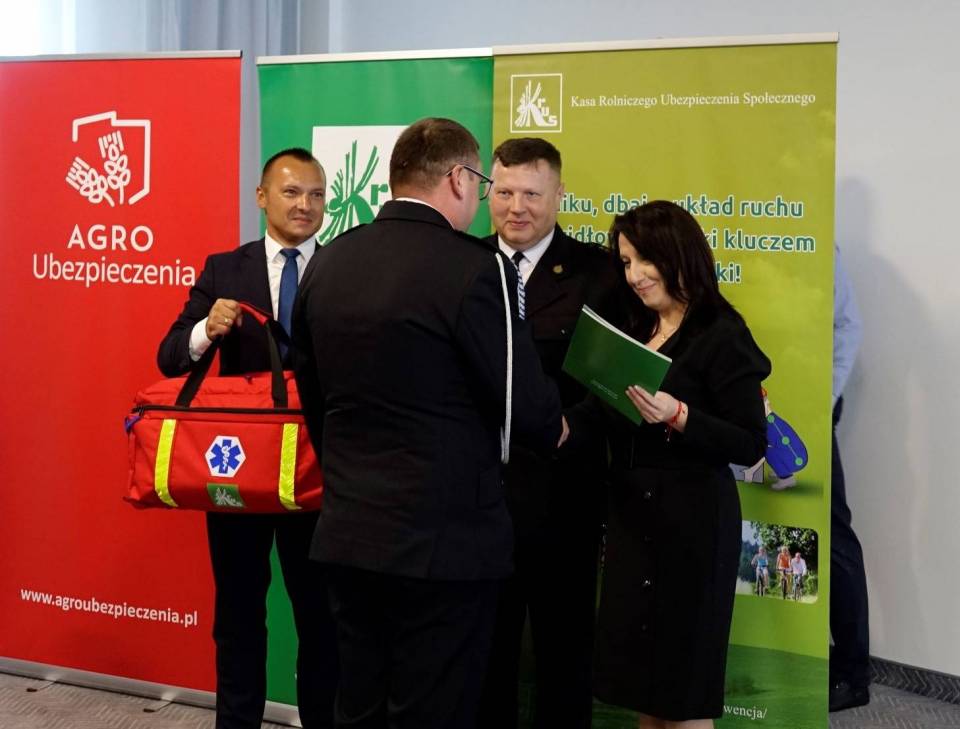 Po części szkoleniowej nastąpiło wręczenie siedmiu zestawów ratownictwa przedmedycznego jednostkom OSP z województwa łódzkiego. Wręczenia dokonali: Zastępca Prezesa KRUS Sylwia Dudzik, dyrektor OR KRUS w Łodzi Michał Jodłowski i starszy brygadier Dariusz Polański, zastępca komendanta wojewódzkiego Państwowej Straży Pożarnej w Łodzi. Wśród obdarowanych przez KRUS były jednostki OSP z Buczku, Chróścina, Dzietrzkowic, Janowa, Kuźnicy Błońskiej, Raciszyna i Stoku Polskiego.