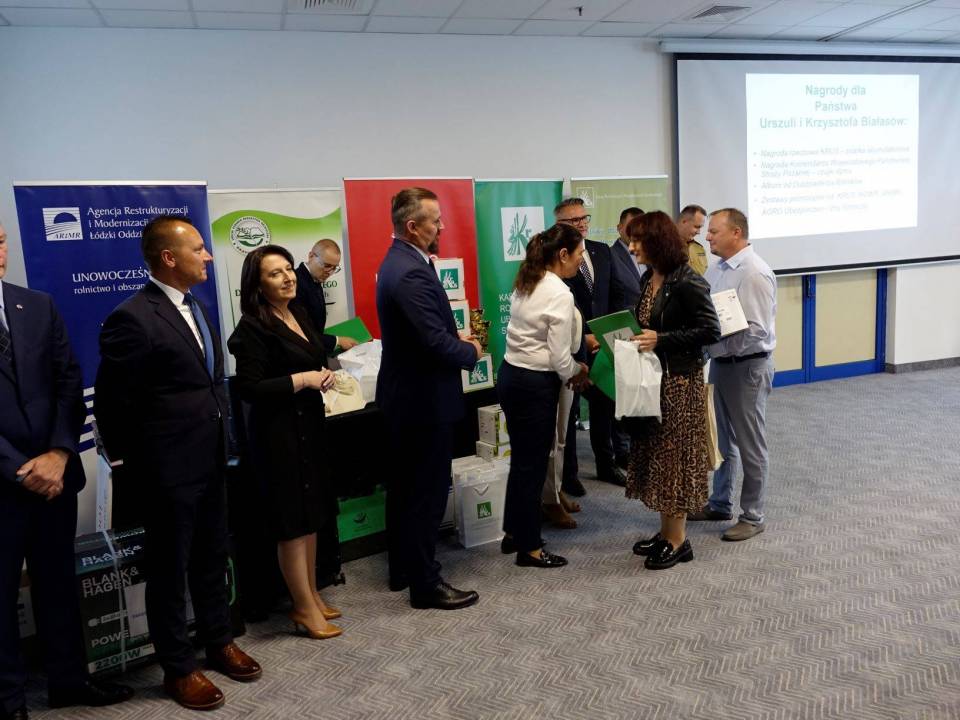 Laureaci i wyróżnieni w łódzkim etapie wojewódzkim XXI edycji konkursu Bezpieczne Gospodarstwo Rolne otrzymali atrakcyjne nagrody rzeczowe ufundowane przez współorganizatorów konkursu, członków Wojewódzkiej Komisji do spraw bezpieczeństwa i higieny pracy w rolnictwie indywidualnym: Kasę Rolniczego Ubezpieczenia Społecznego, Okręgowy Inspektorat Pracy w Łodzi, Oddział Terenowy KOWR w Łodzi, Łódzki Ośrodek Doradztwa Rolniczego z siedzibą w Bratoszewicach, Łódzki Oddział Regionalny ARiMR, Kuratorium Oświaty w Łodzi, Izbę Rolnicza Województwa Łódzkiego, Komendę Wojewódzką Państwowej Straży Pożarnej w Łodzi, Duszpasterstwo Rolników Archidiecezji Łódzkiej i AGRO Ubezpieczenia TUW. Puchary dla laureatów ufundował Marszałek Województwa Łódzkiego.