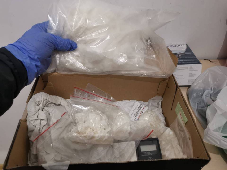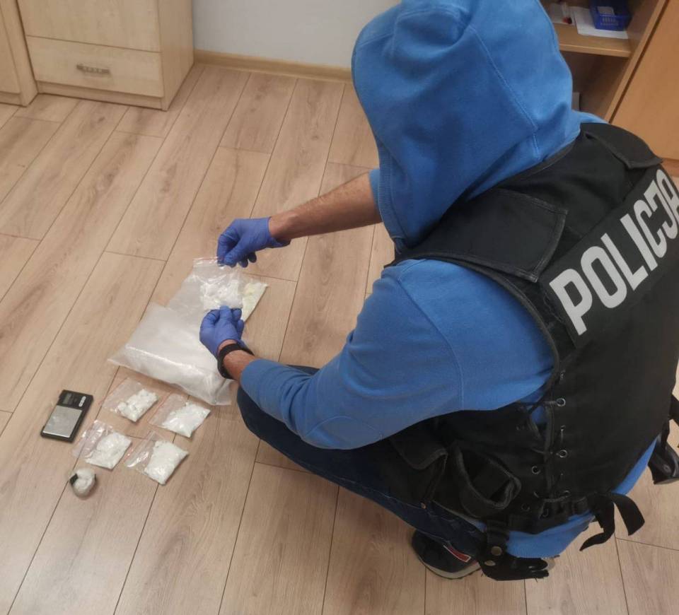 Funkcjonariusze przeszukali mieszkanie zajmowane przez 22-latka. W szafie jednego z pomieszczeń znaleźli tekturowe pudełko, w którym była torebka foliowa z metamfetaminą oraz kilka dilerek z porcjami białej substancji przygotowanej do dalszej dystrybucji. W szafie policjanci znaleźli również wagę elektroniczną do porcjowania narkotyków. Łącznie funkcjonariusze zabezpieczyli prawie 1400 gramów metamfetaminy.