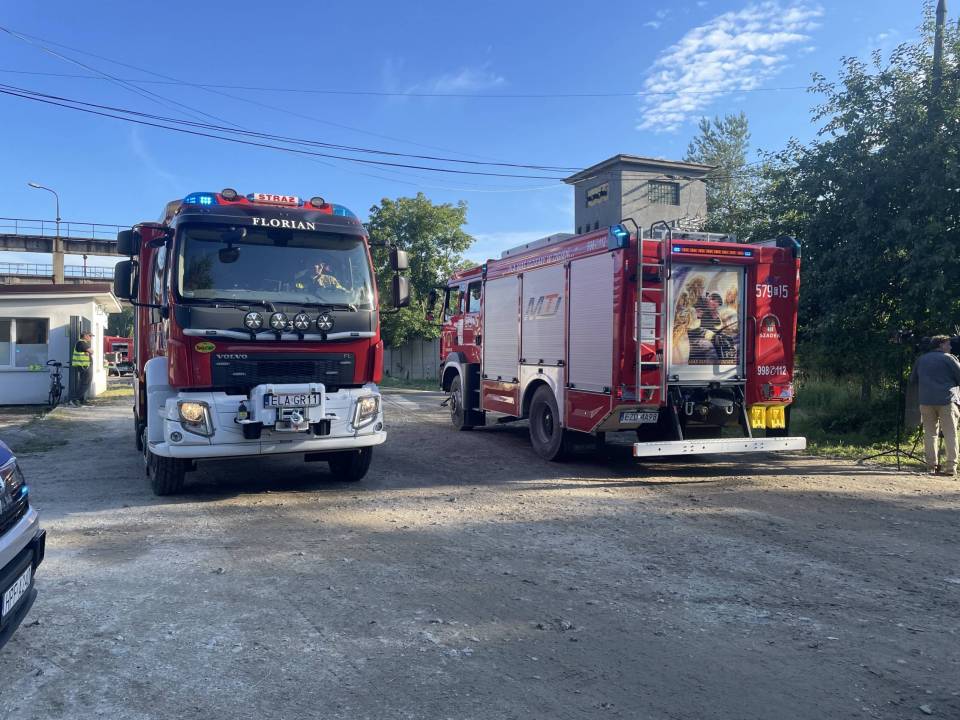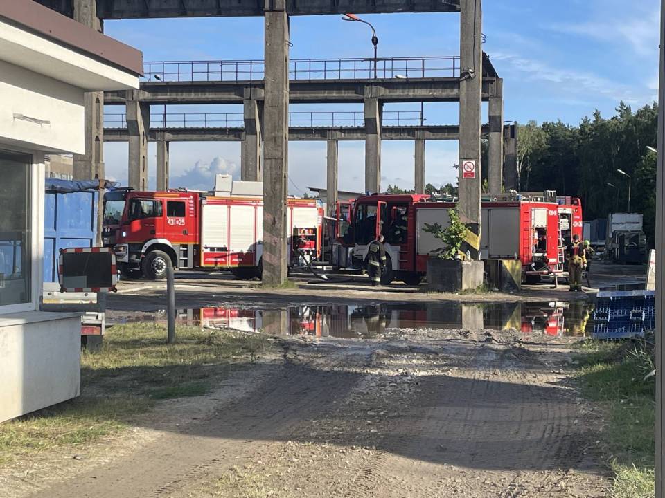 W pierwszej fazie działań strażacy skupili się nie tylko na gaszeniu pożaru, ale także na obronie sąsiedniego budynku magazynowego, w którym również składowane były pojemniki po aerozolach.