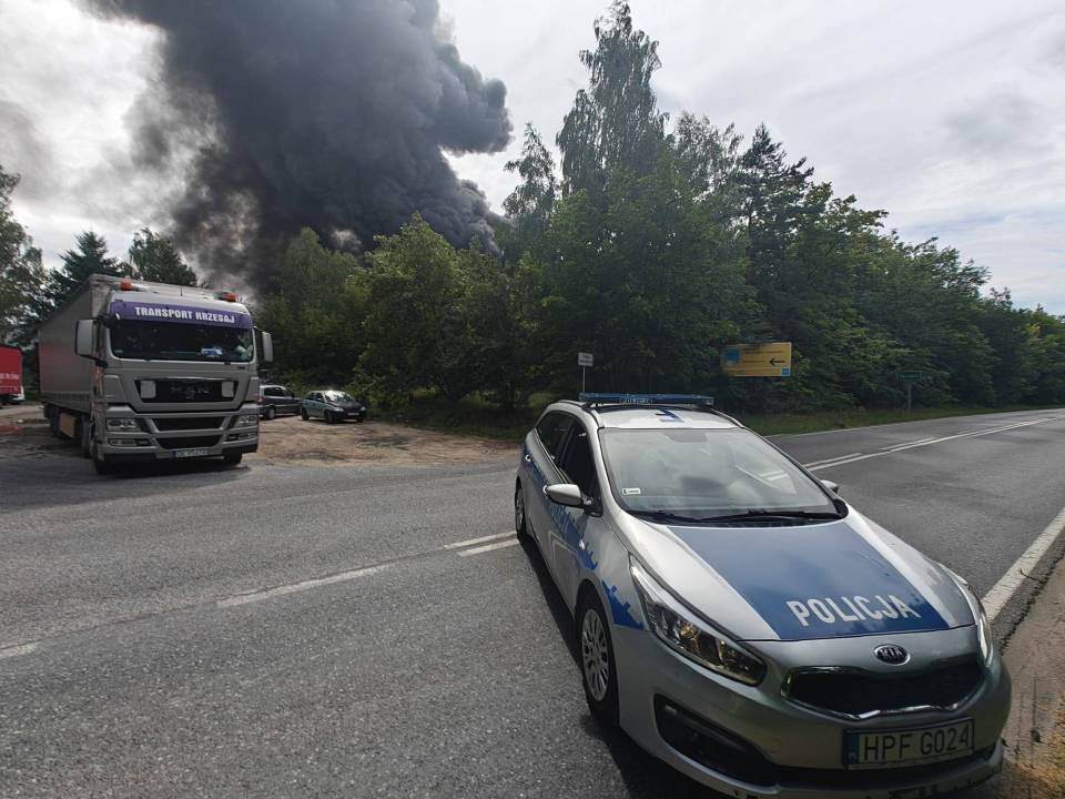 Łascy policjanci w znacznej liczbie ponad 30 funkcjonariuszy nie tylko pracowali na miejscu pożaru, ale także zablokowali drogę w najbliższej okolicy składowiska, kierując zmotoryzowanych na tymczasowe objazdy. Około godziny 18.00 już po opanowaniu sytuacji ruch na DW  473 odblokowano.